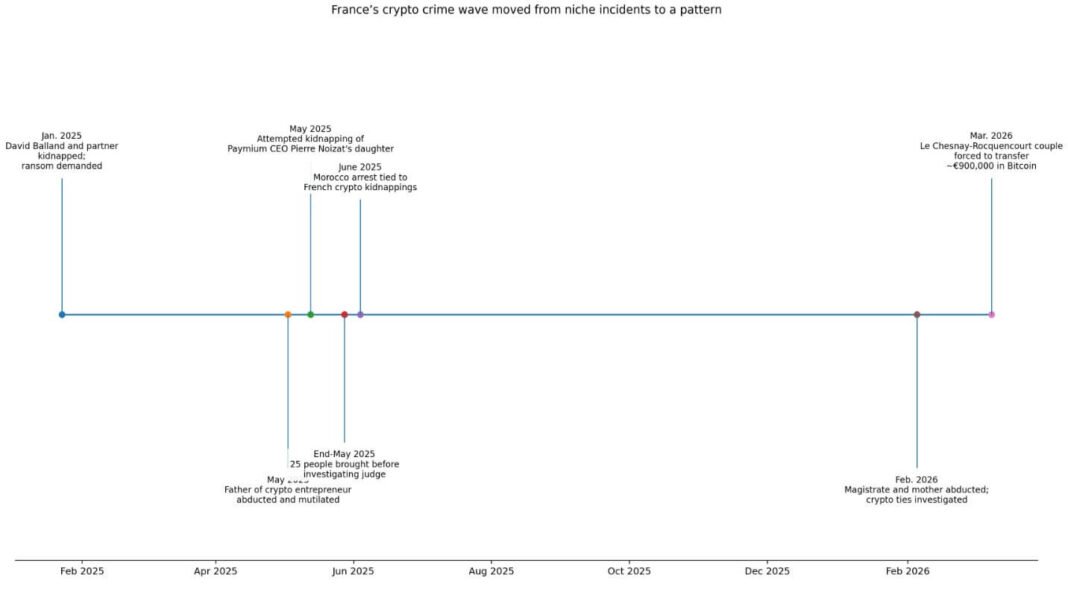 France’s crypto crime wave moved from niche incidents to a pattern of kidnappings, mutilations, and home invasions between January 2025 and March 2026.