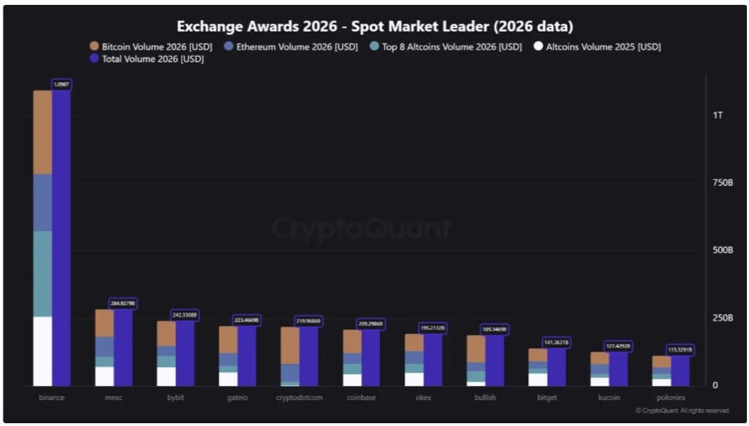 Data from CryptoQuant shows that Binance, the world’s largest crypto exchange, cleared over $1 trillion in trading volume during the first 112 days of 2026.