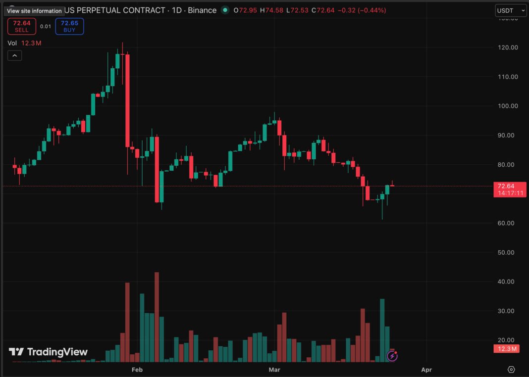 Technical indicators scream caution. The swift drop from $120 suggests the parabolic phase has fractured. Volume on the downdraft was significant, indicating institutional liquidation rather than mere retail panic.